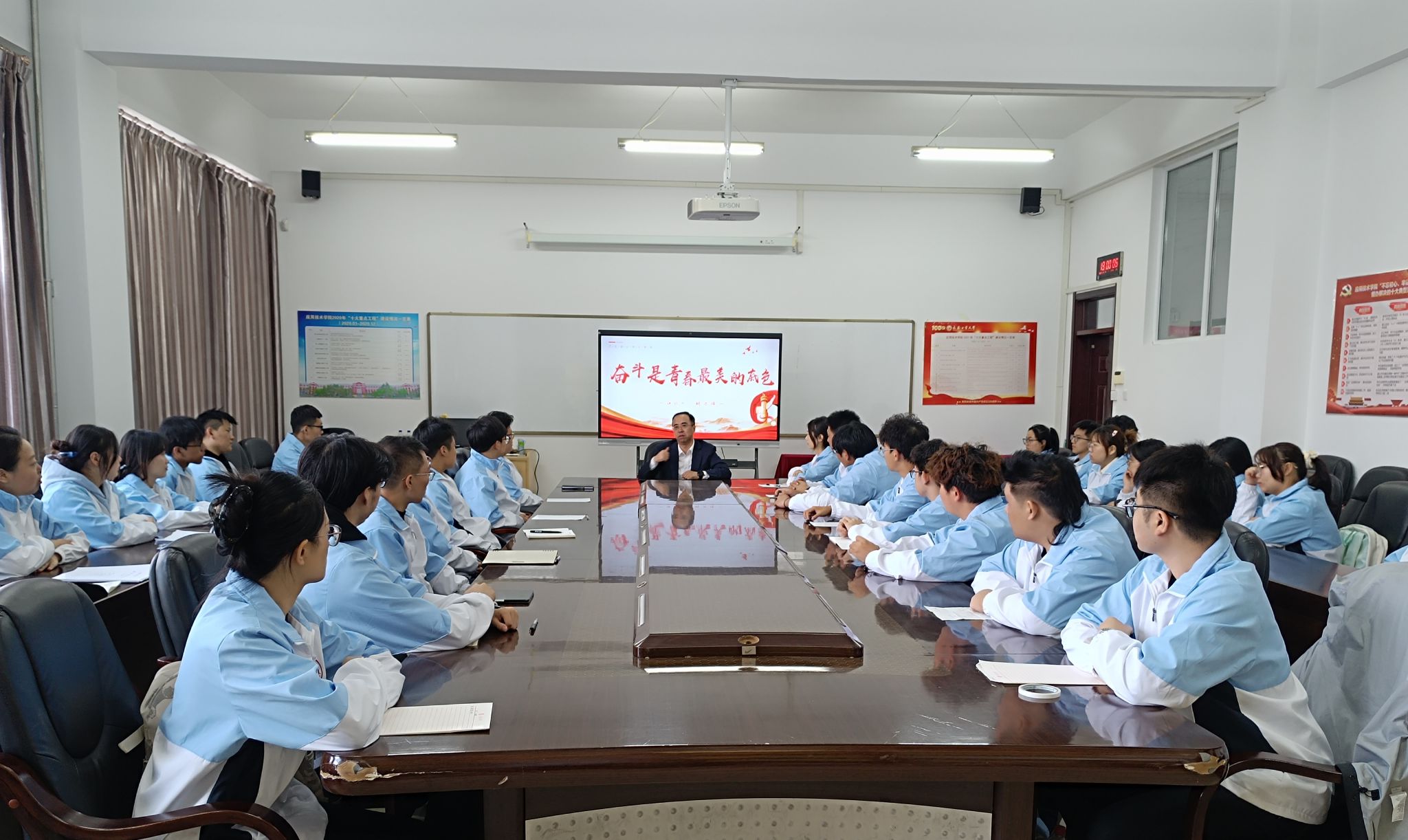 讲授过程中,胡刃锋副校长以“过来人”的身份与同学们畅谈人生理想。他结合自身求学、工作经历,以及学校发展历程,用“从车间实训到学科突破”“从校友扎根基层到行业领军”的真实案例,告诉同学们:“奋斗不是一句口号,而是来自于每一堂实训课和每一次技能练习。”针对太阳成集团tyc122ccvip学生学制短、成长节奏快的特点,他特别强调,两年时间看似紧张,但只要明确方向、踏实努力,同样能实现能力的“跨越式提升”。